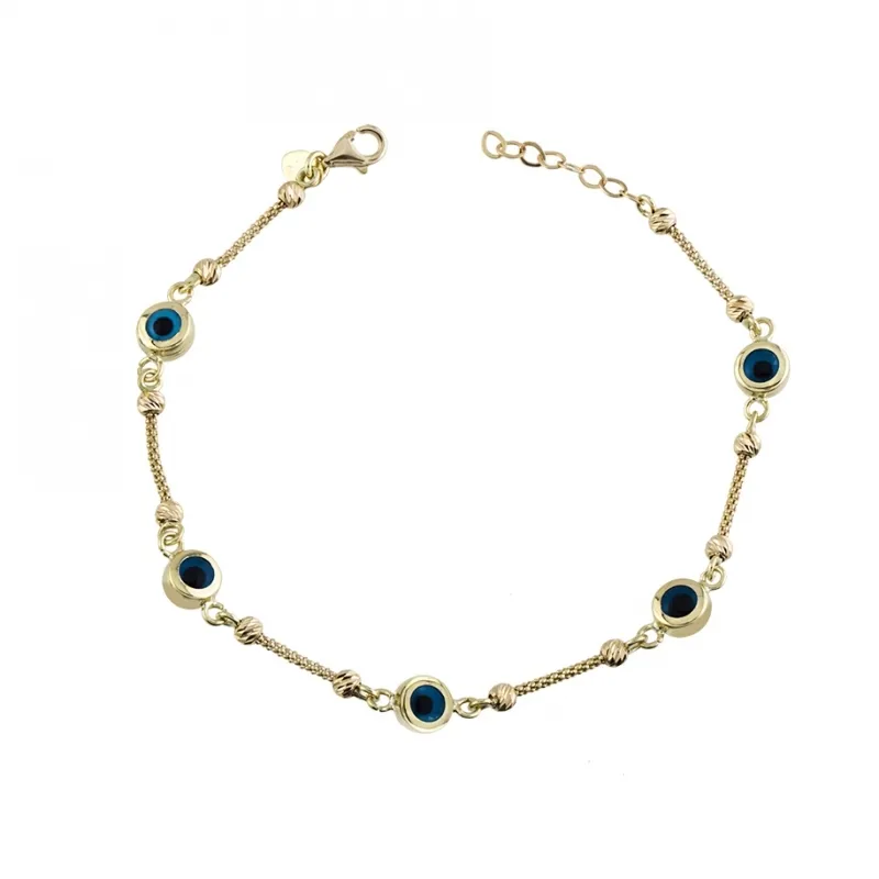 Altın Bileklik Modelleri modellerinden 14k Mavi Boncuklu Toplu Bileklik ürünümüz,