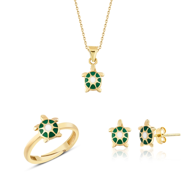 Altın Çocuk Takıları modellerinden Altın Mineli Çocuk Takımı Kaplumbağa Yeşil ürünümüz,