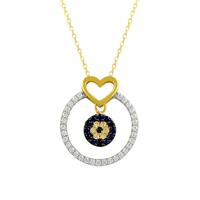 Nazar Boncuklu Kalpli Altın Kolye KLF1354