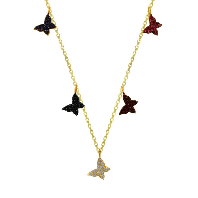 Altın Kolye Modelleri modellerinden Renkli Kelebekler Altın Kolye ürünümüz,