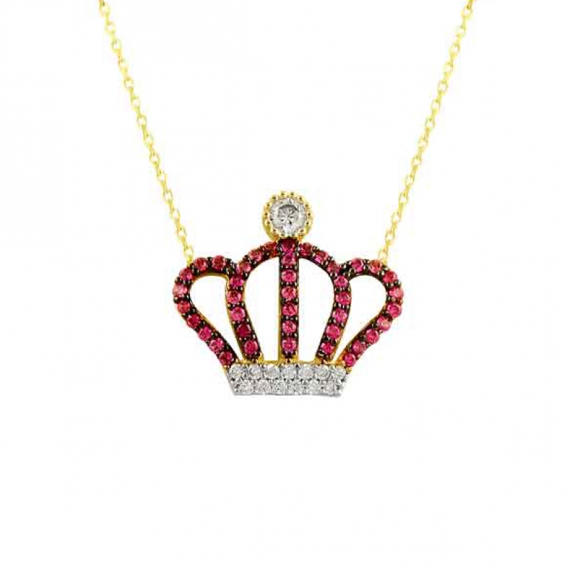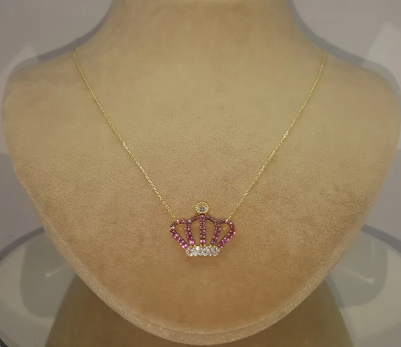 Kral Tacı Renkli Altın Kolye